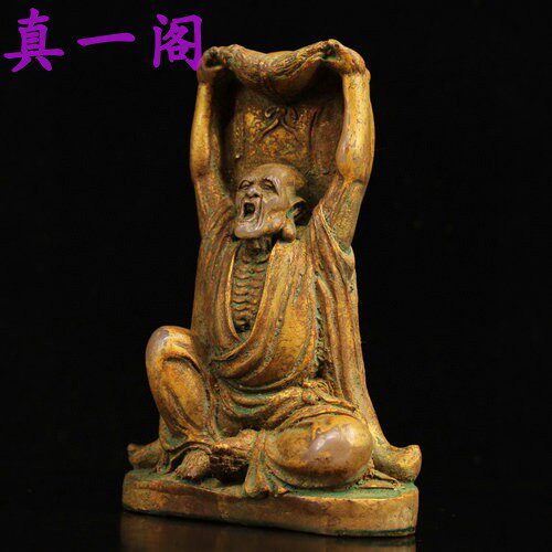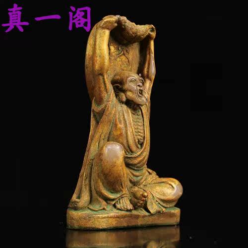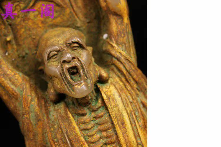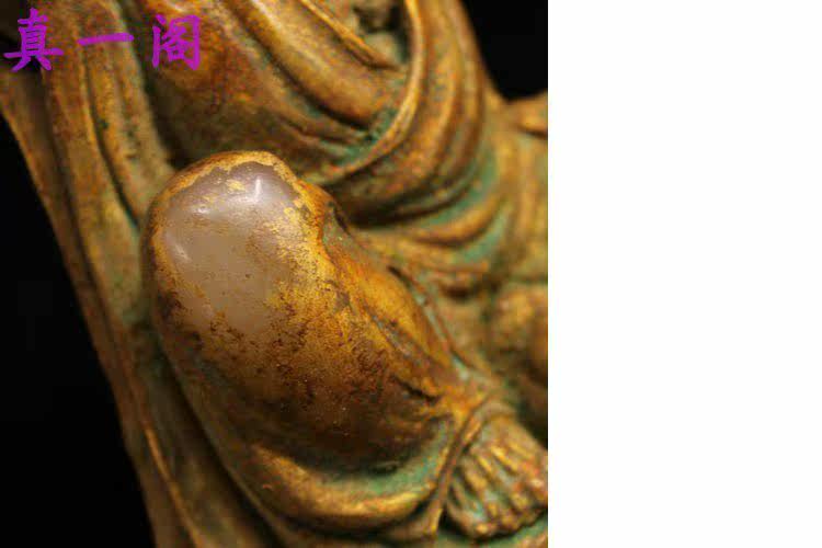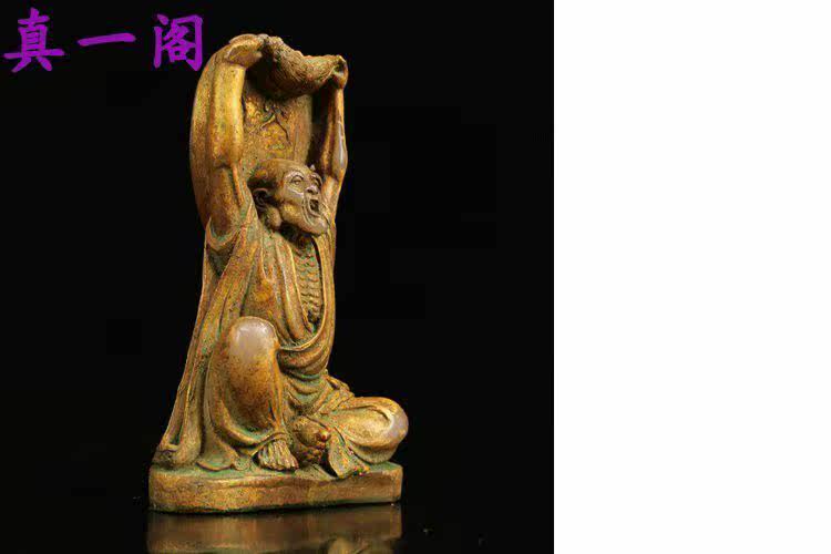 Античный и антикварный, старый тибетский старые модные дети, древние нефритовые и белые нефритовые династии династии позолочено Джин Луо Хан Будда, украшение 19*14