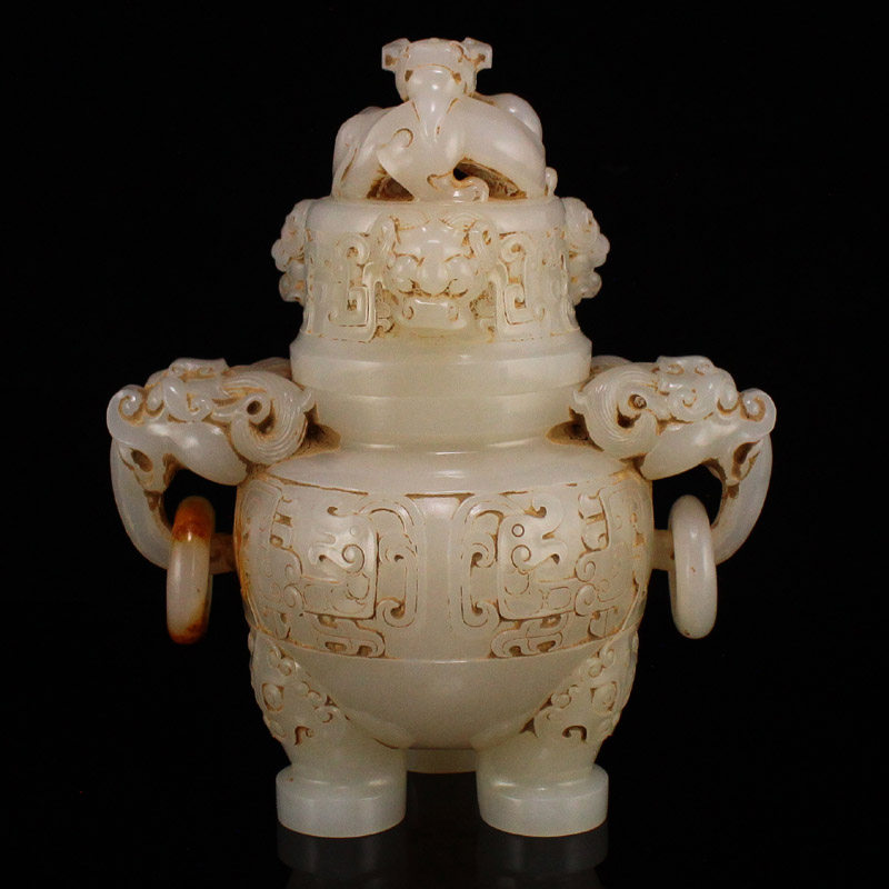 Цена укуса Синьцзян Хетиан нефритовый древний нефритовый старый нефрит скульптура резня с двойным животным двойным животным кольцевым кольцом