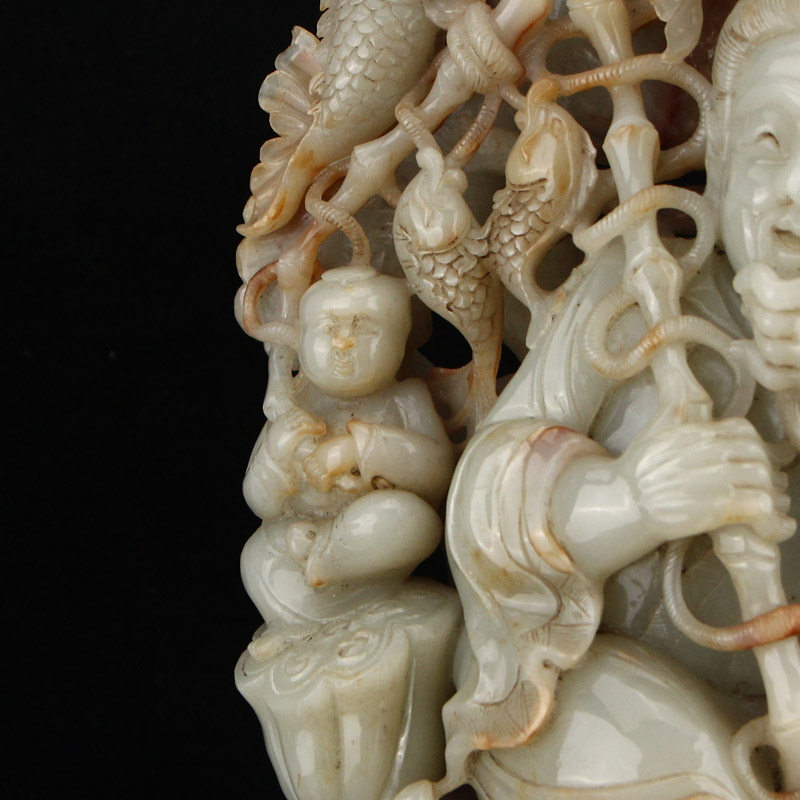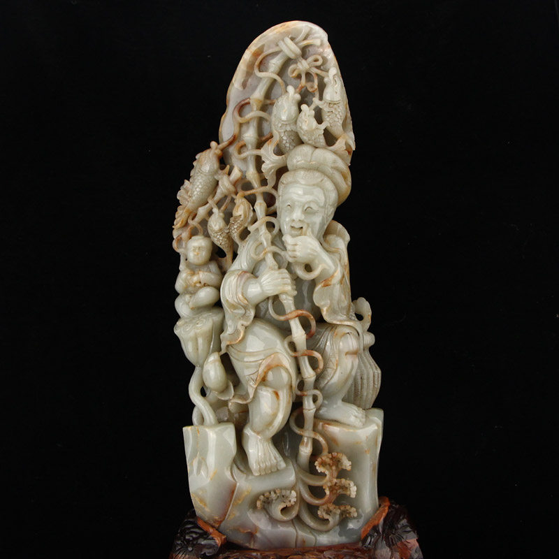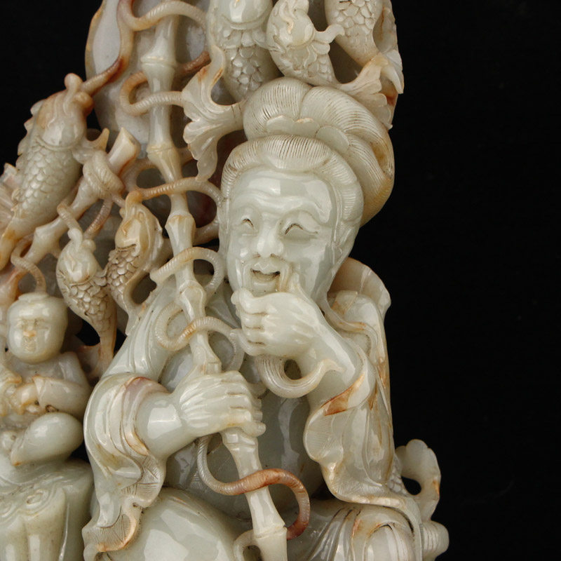 Один укус 22 фунтов Синьцзяна Хетиана нефрита Древний нефрит, старый нефрит, резное рыбак, деликатный отдел.