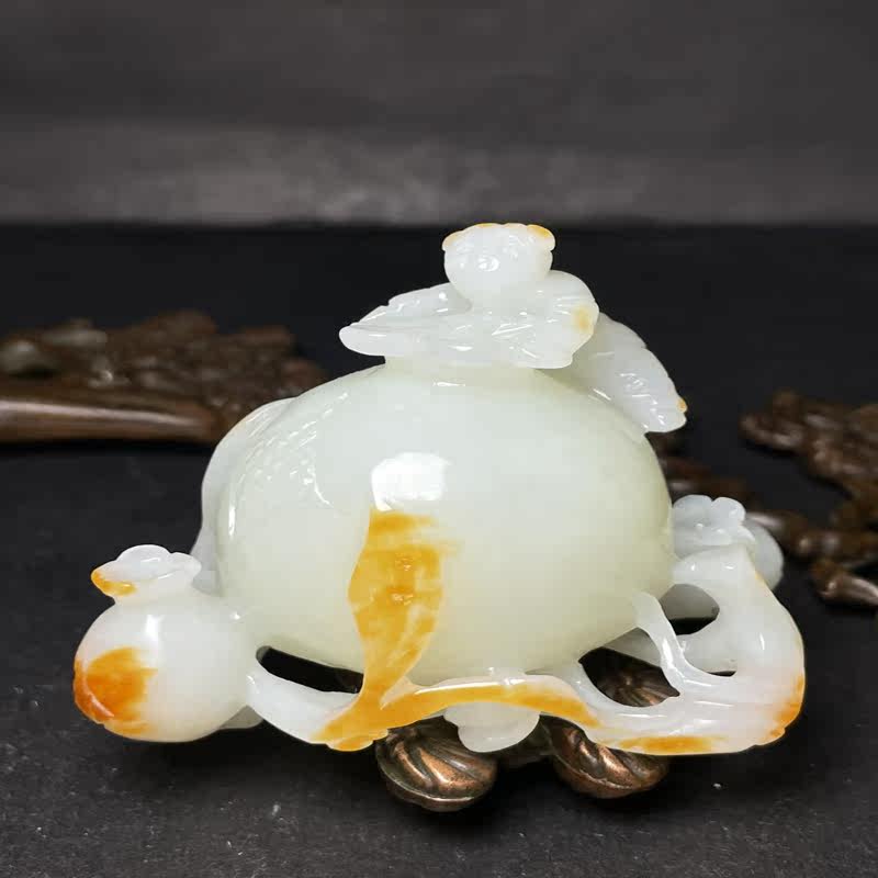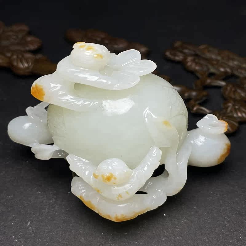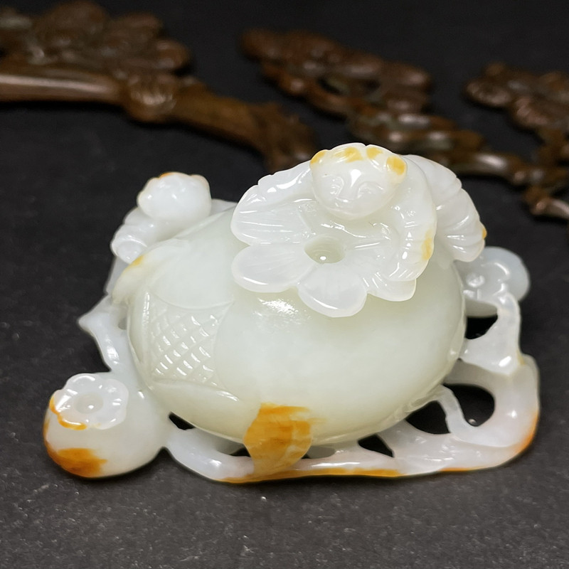 Один цена Гетиан Джейд Древний нефрит, старая нефритовая резьба многословная, многослойная гранатная орнамент Бесплатная доставка