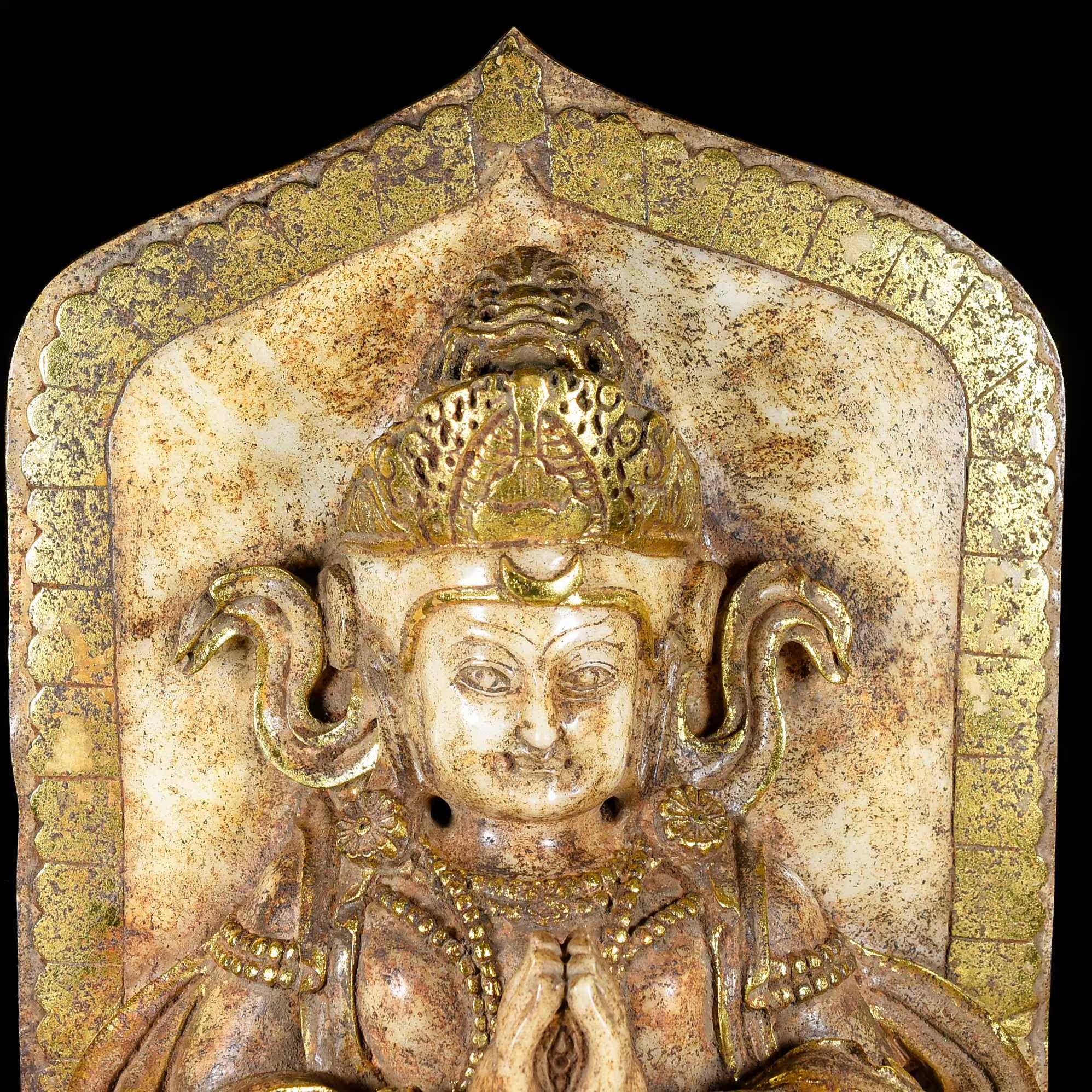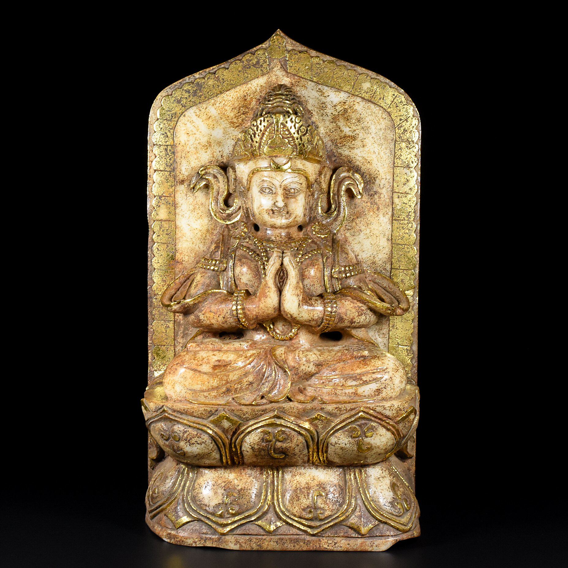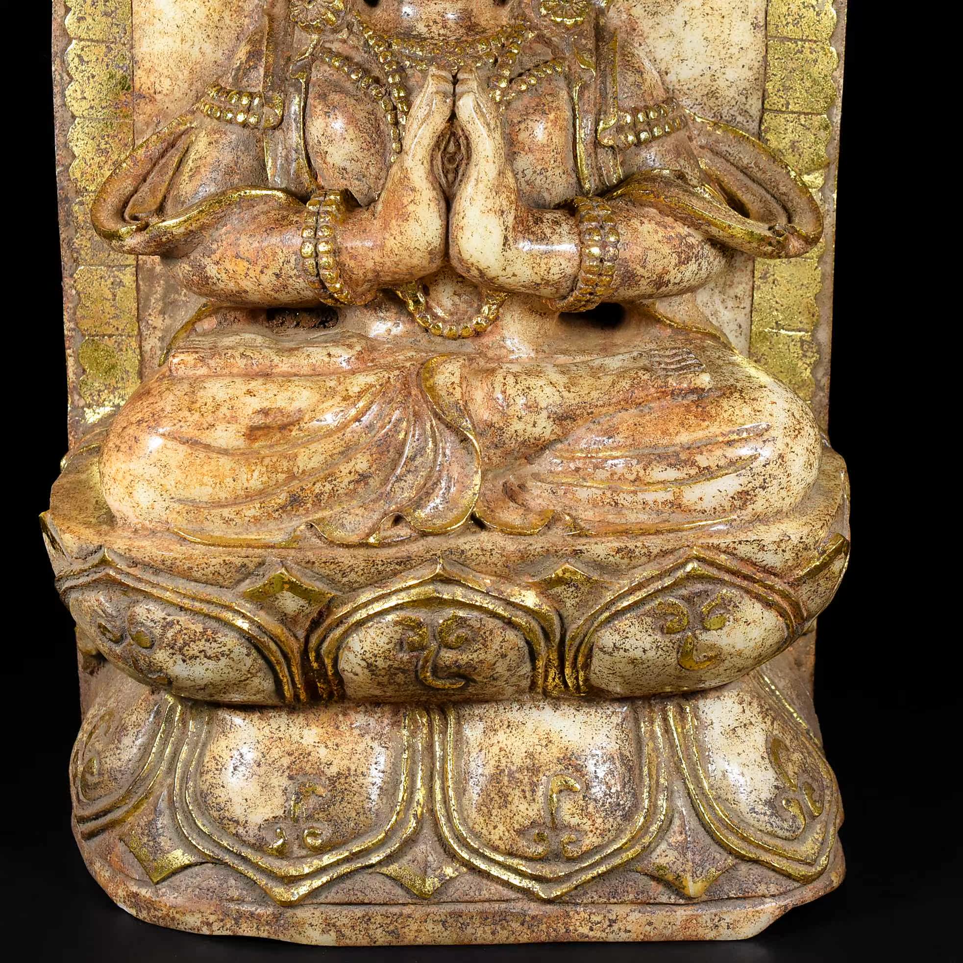 Укус хэтианского нефритового древнего нефритового старого нефрита позолоченной золотой скульптура Тибетская статуя Будда