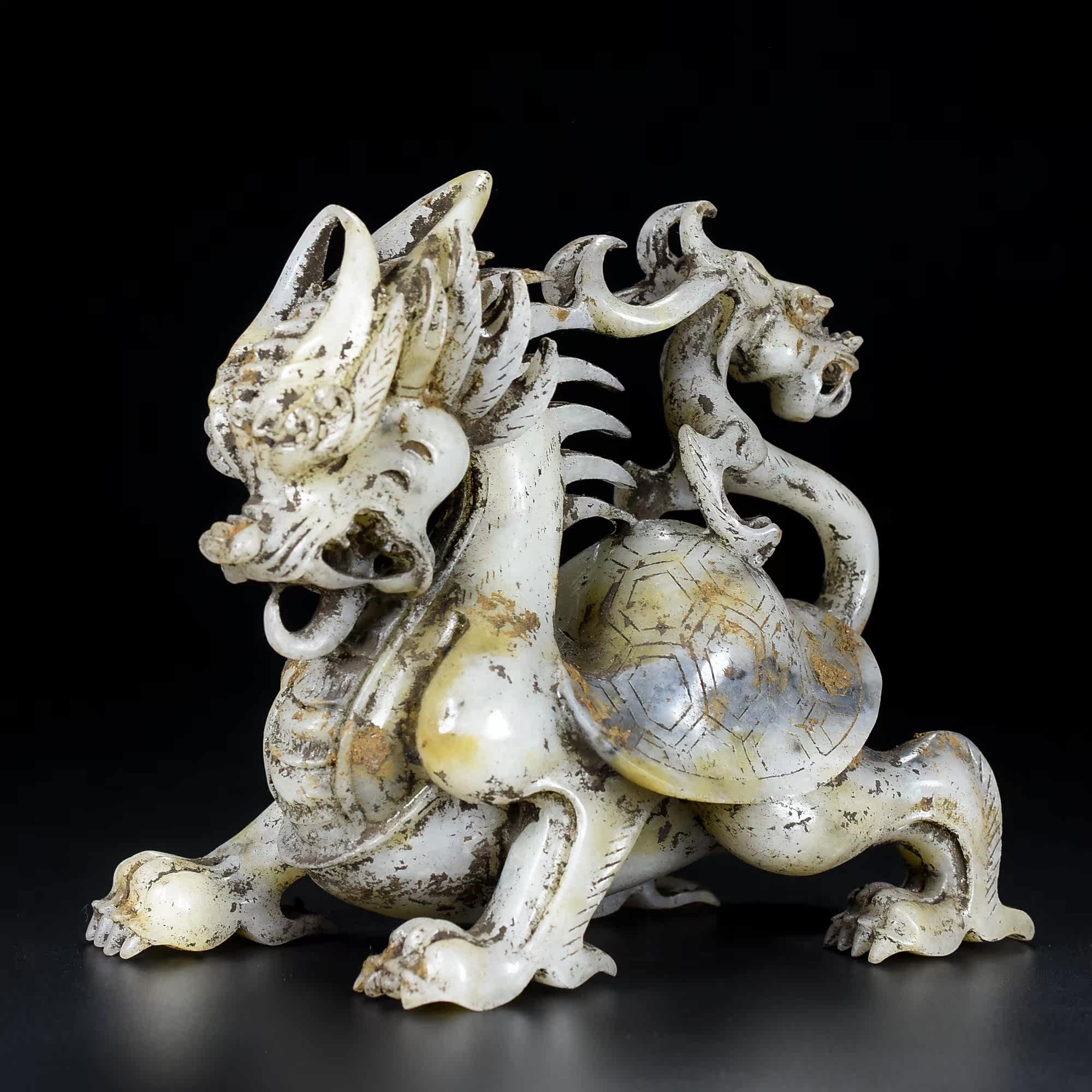 Цены на хетан Джейд Древний нефрит, старый нефрит, скульптурная двойная голова дракона
