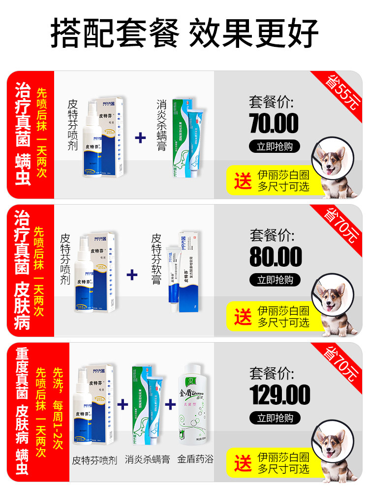 Golden Shield Pitterfen Spray Dogs and Cats, кошки, моховые бактериальные кожи заболевания Внешнее лекарство от домашних животных домашних животных