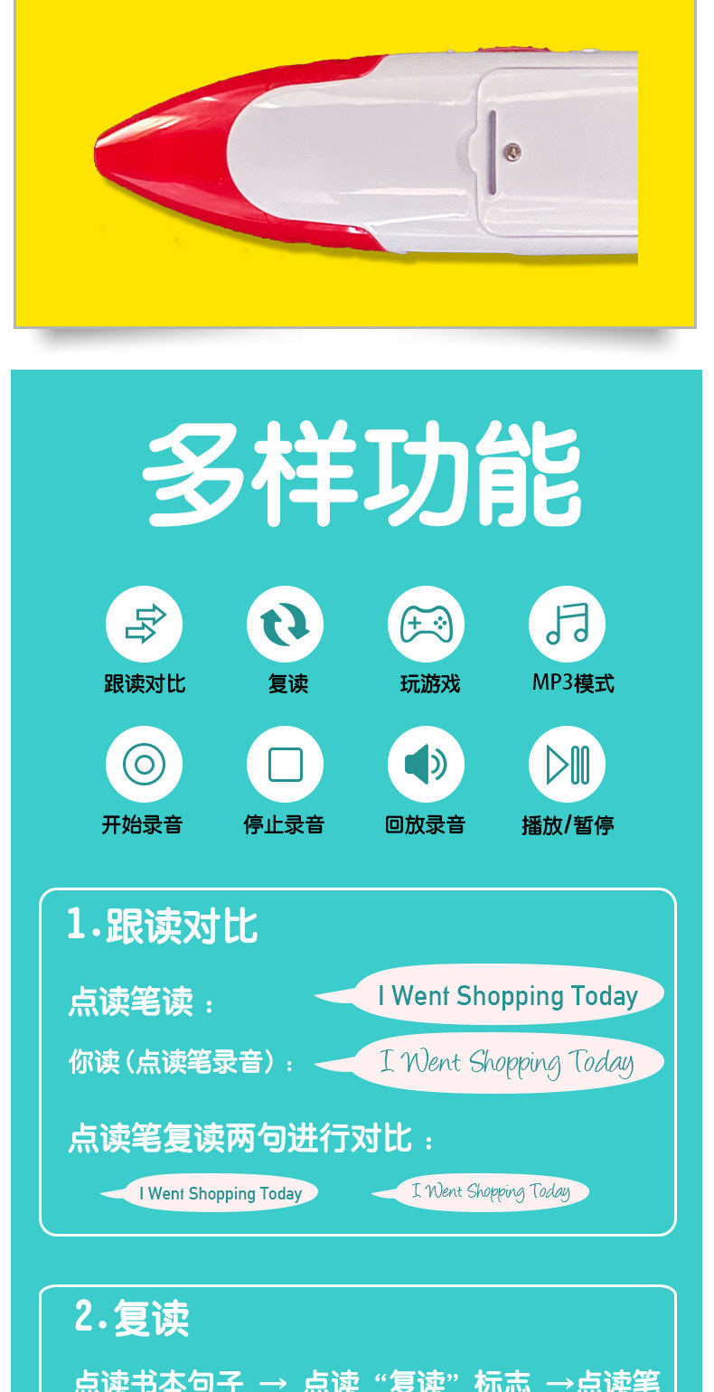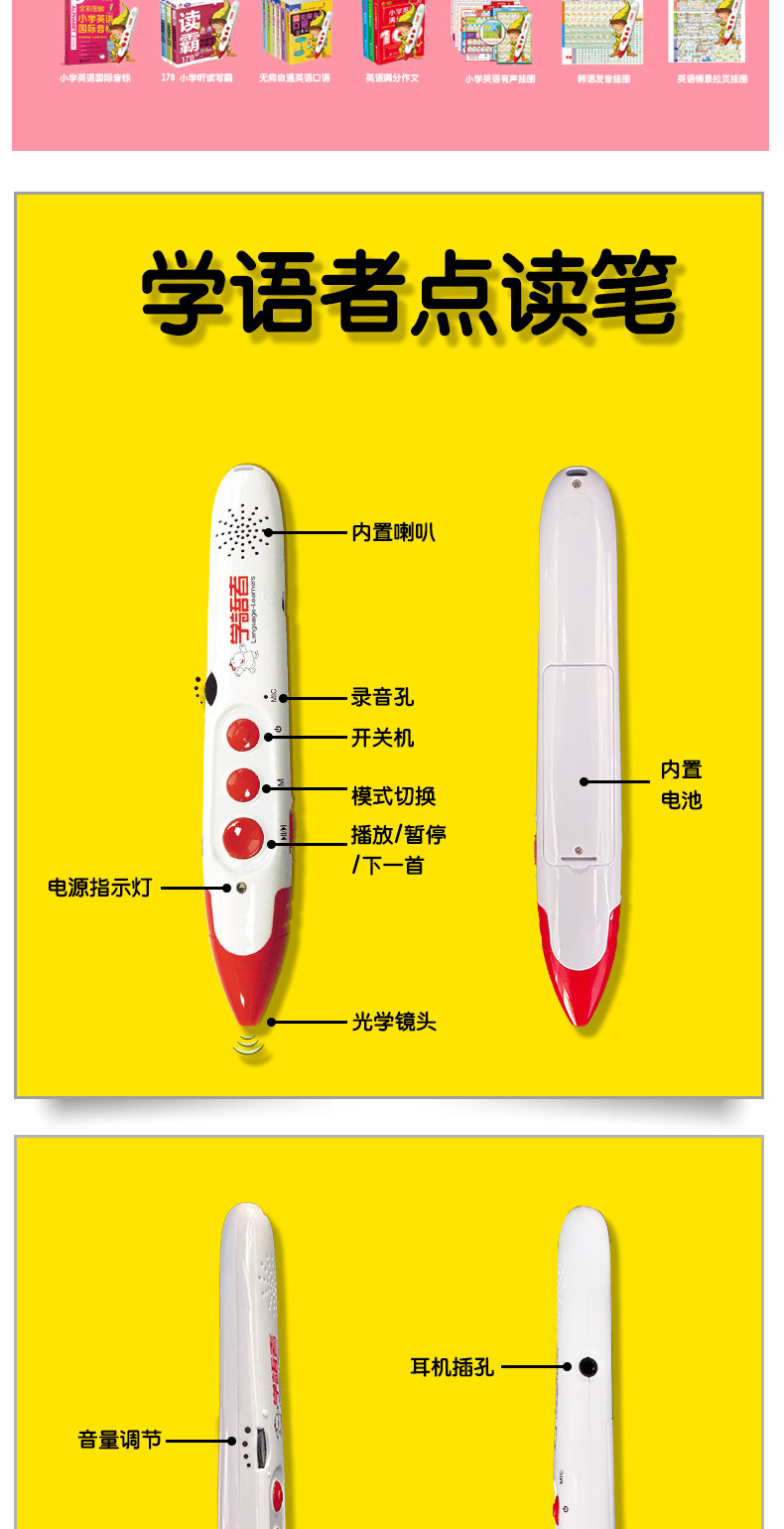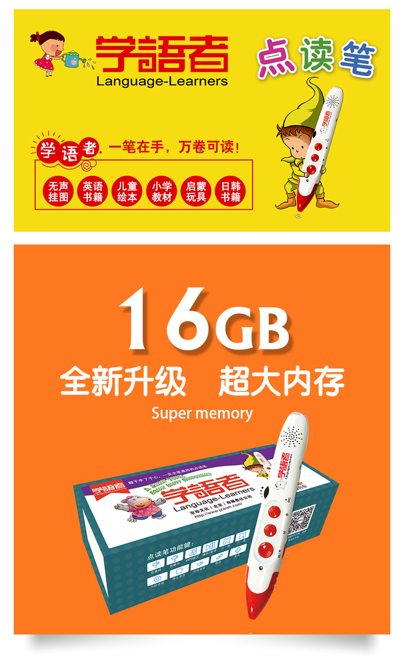 Ручка для чтения, учебные пособия с лестницей, обучающая машина с зарядкой, 16G, английский, MP3, обучение, раннее развитие