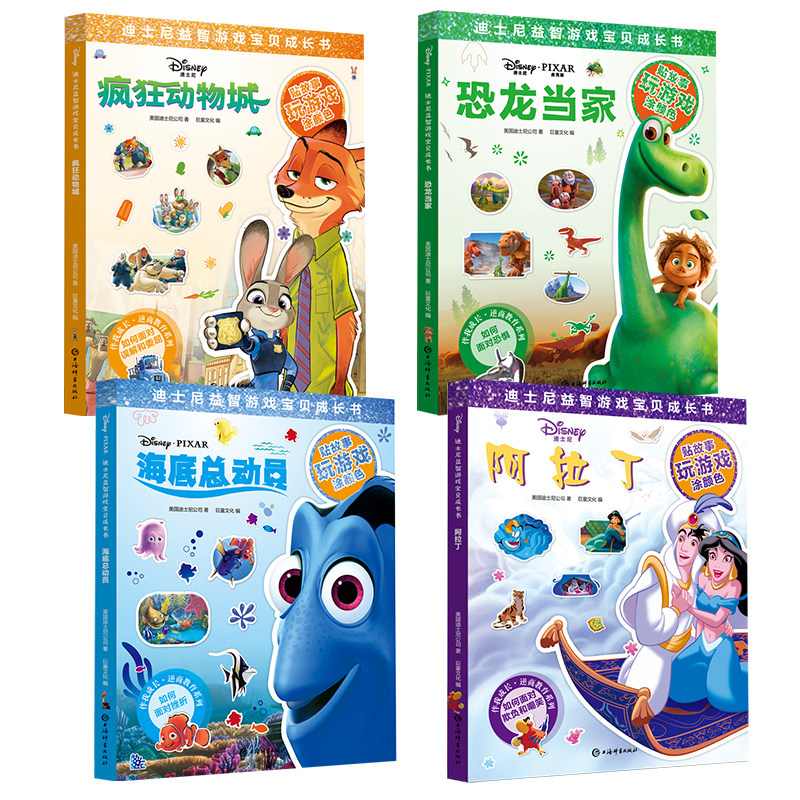 Все 4 тома развивающей игры Диснея, книга для роста ребенка, серия обратного бизнес-обучения, «Зверополис» + «Аладдин» + «Великий динозавр + В поисках Немо», книги для раннего развития детей 3–6 лет, самозащита JT