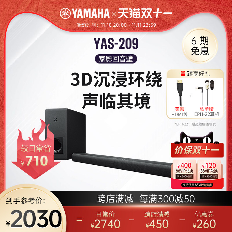 Yamaha/雅马哈 YAS-209 Home Theatre 5.1 Echo Wall Wireless Bluetooth Dolby Sound Sound
