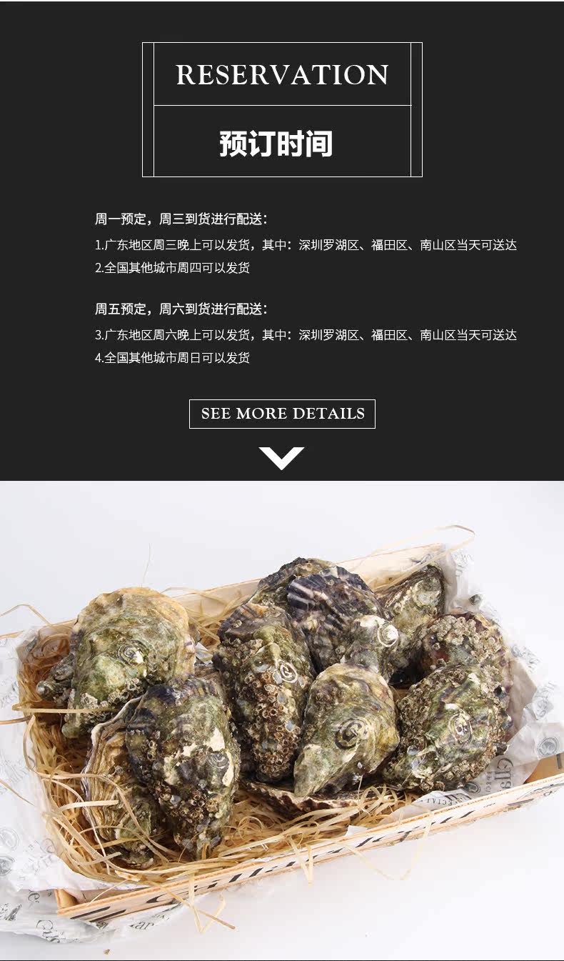 | Спецификация устриц: | XL (90G (включая) -120G (исключая)), Xxxl (140g (включая) -190g (исключая)), Xxl (120g (включая) -140g (исключая))) |