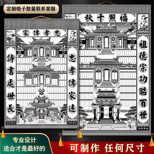 Семейная церковь Дуоцин Оси Черно -белая Дан Цинджиапу Спектр Спектр Спектр висящая живопись может написать ткань старая семейная генеалогия Свитка Генеалогия