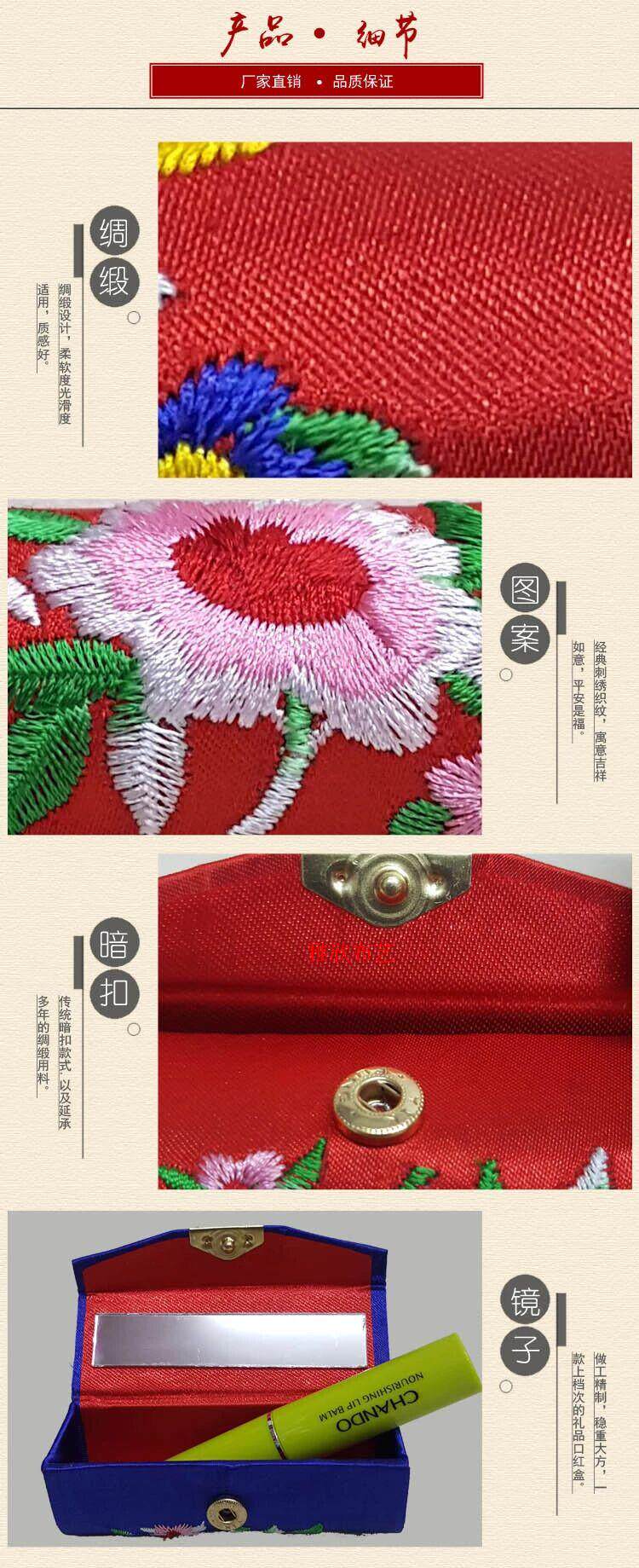 Эта парчовая коробка является прекрасной MM для вышитого партрового мастерства с высоким уровнем вышивки с национальными характеристиками.  может положить с собой как помаду, так и небольшие украшения или небольшой косметический стол, текстура парчонки, с большой областью вышивки. Эта коробка для помады легко добраться. Китайский стиль отличает вас, и он Ярко.Вы можете установить другие мелочи.Держите свою сумку аккуратной навсегда.