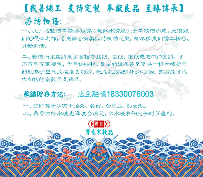 [Особенности] Цвет элегантен, узоры красивые и благоприятные, вышивка тщательно, текстура шелка мягкая, удобная и дышащая, а блеск сияющего в разных светах отличается.