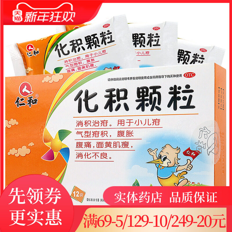 Гранулы Renhe Huaji 2 г * 12 пакетов в коробке для детей для лечения вздутия живота, болей в животе, расстройства желудка и желтоватого цвета лица.