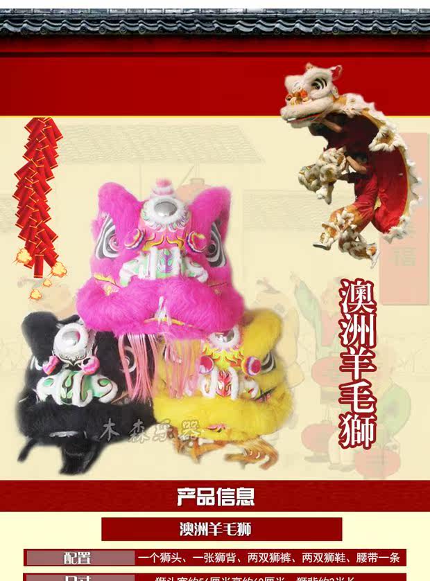 Мусен Крафт Танцы Лев Аутентичный австралийский высококачественный шерстяной львиной львиной львиной реквизит наполовину бамбуковая полоса голова льва головы