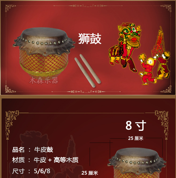 Музыкальный инструмент Лев барабан Фошан 8 -INCH Львиный барабан Детский танец львов
