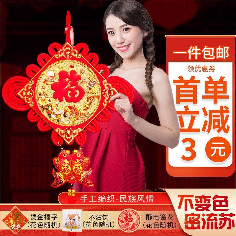 Китайский узел, подвесной бархатный тканевый кулон удачи для дома, гостиной, входа, элитный большой мирный узел, украшение, благоприятный настенный подвес