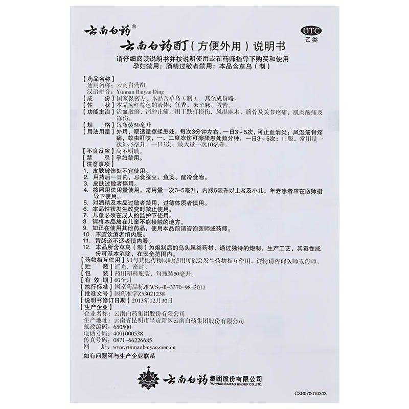 Настойка Юньнань Байяо 50 мл может активизировать кровообращение, рассеять застой крови, уменьшить отек и облегчить боль в суставах, поврежденных ушибами.