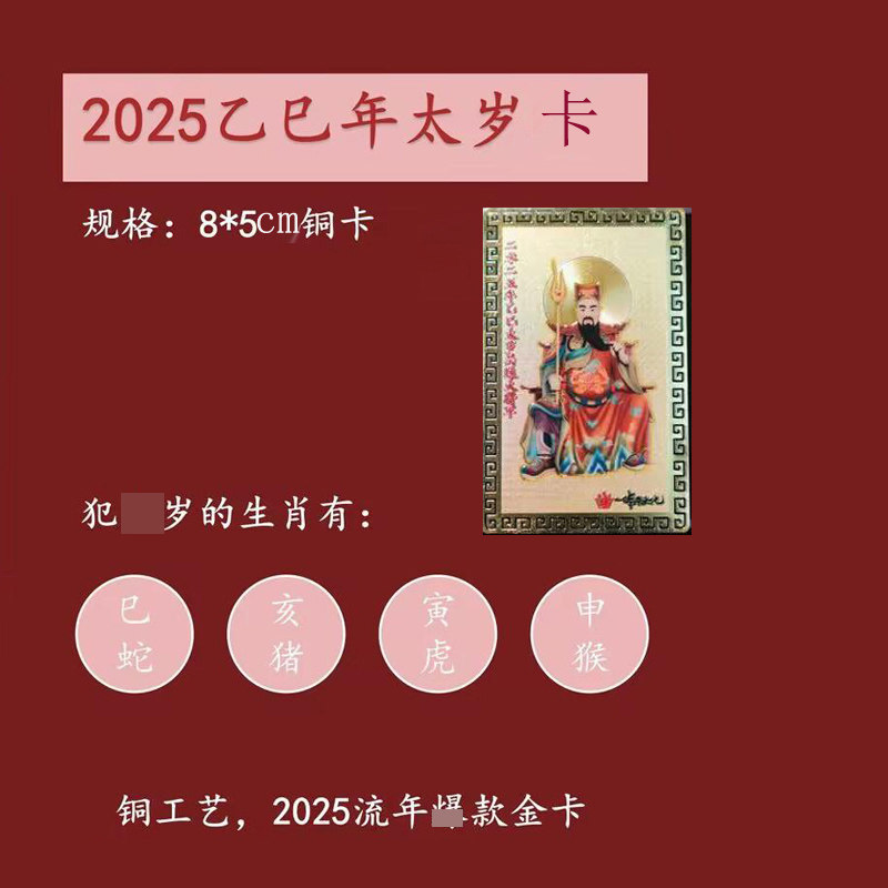 Shao Weihua Tai Sui Card 2025 Yi Si Snake Year Wu Sui Золотая карта зодиака змея тигровой свиньи обезьяна переноска