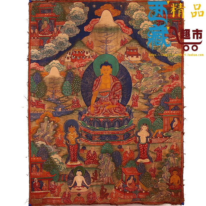 Тибетское древнее искусство и культура драгоценный камень ручной работы минералов, нарисованные картины Шакьямуни старая Тхангка Украшение