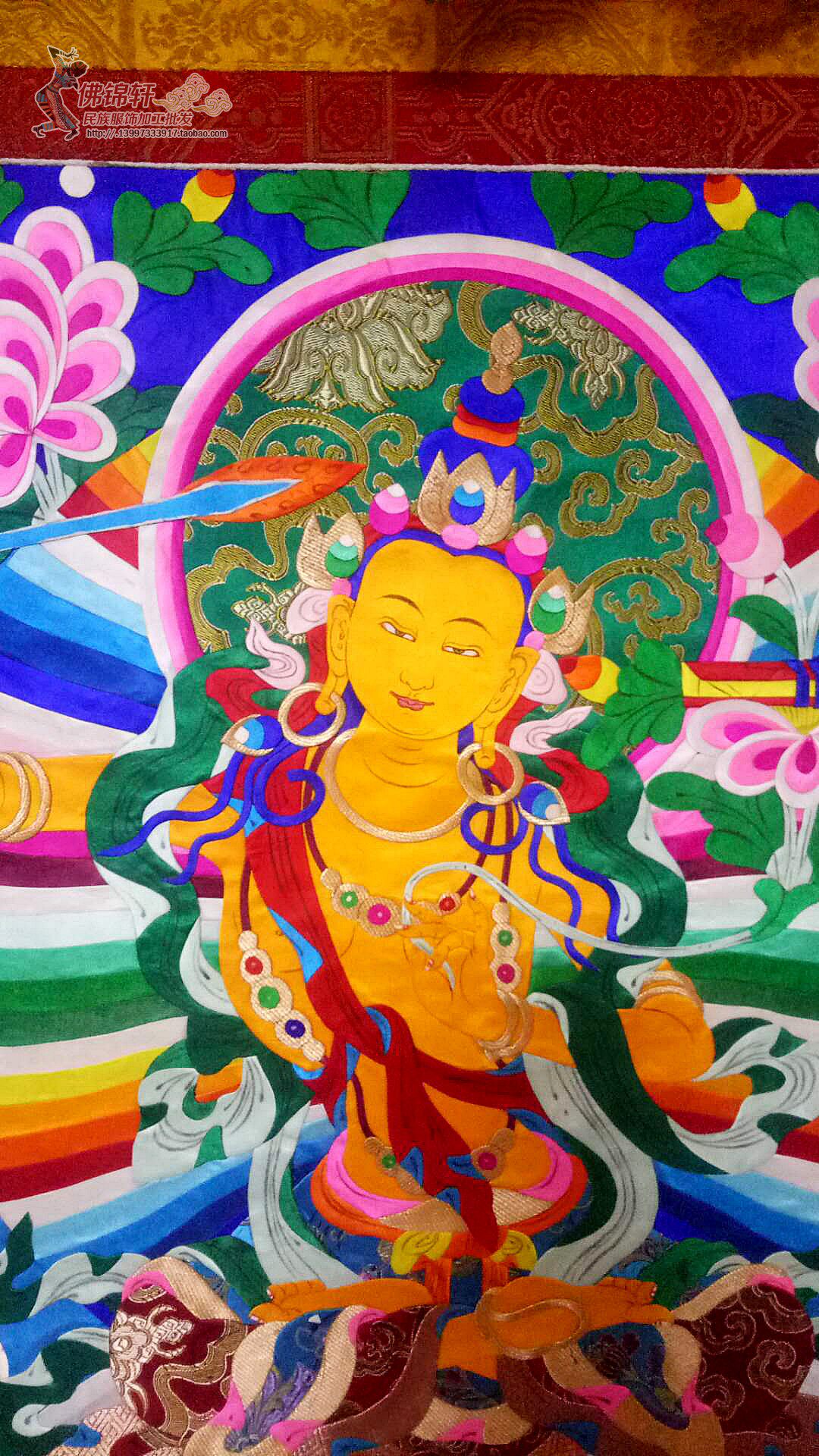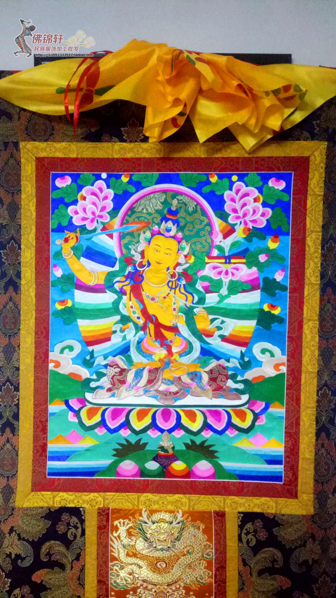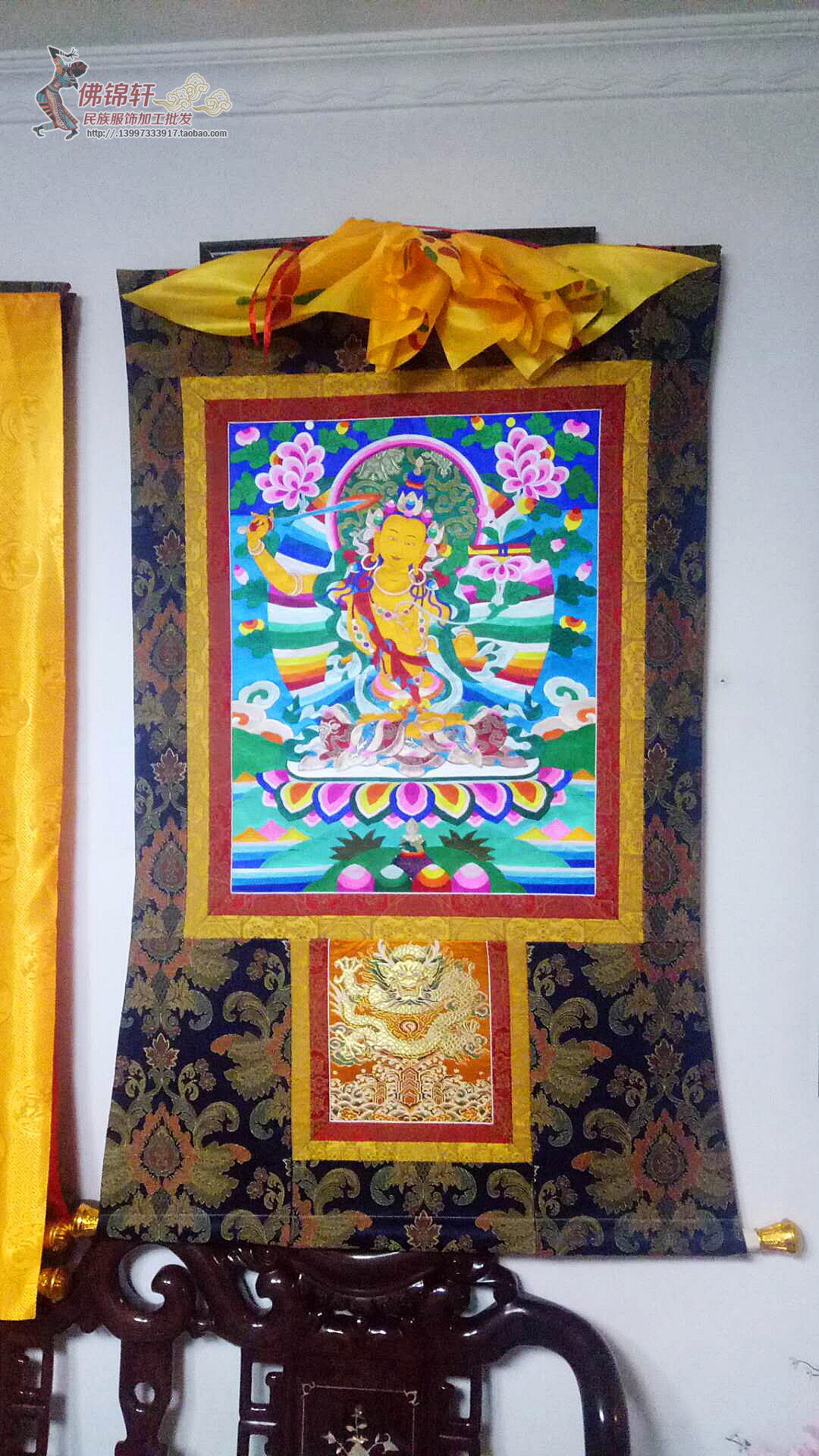 Настоящая вышивка шелковой ткани Bodhisattva Guardian Guardian Thangka Тибетская ручная мастерство