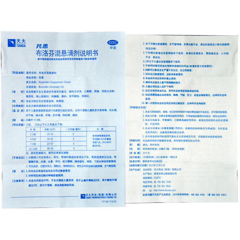 Тонбрафен смешанная капля подвески падает 20 мл детского гриппа официальное флагманское магазин