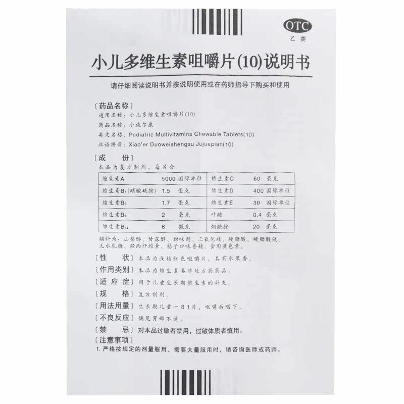 小施尔康 Педиатрические витамины жевательные таблетки 30 таблетки детей с задержкой детского развития педиатрического мультивитамина Жевать таблетки