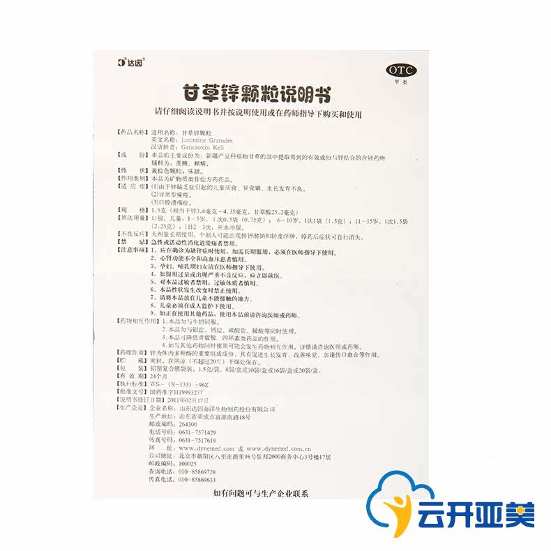 Daini Ganxin солодка частицы цинка 1,5 г*10 пакет роста анорексии детей и развитие плохого отсутствия цинка различий