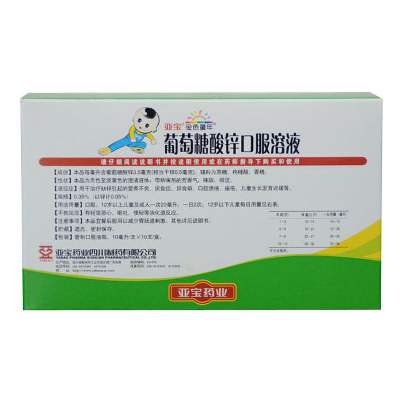 亚宝 Оральный раствор цинка глюкозы цинка 10 мл*10 используется для лечения недоедания, вызванного дефицитом цинка.