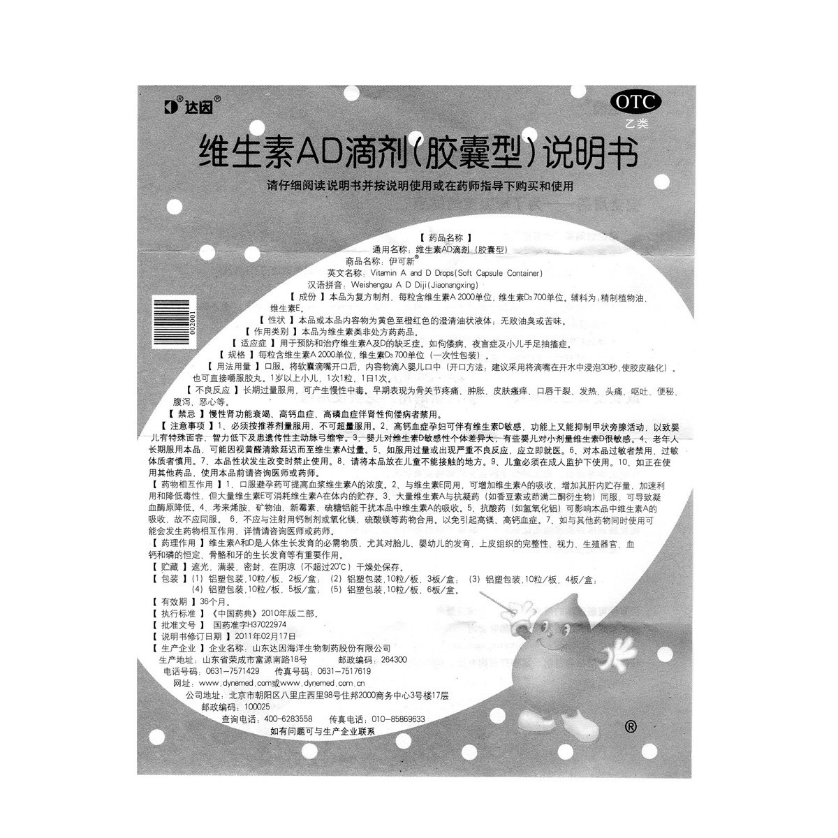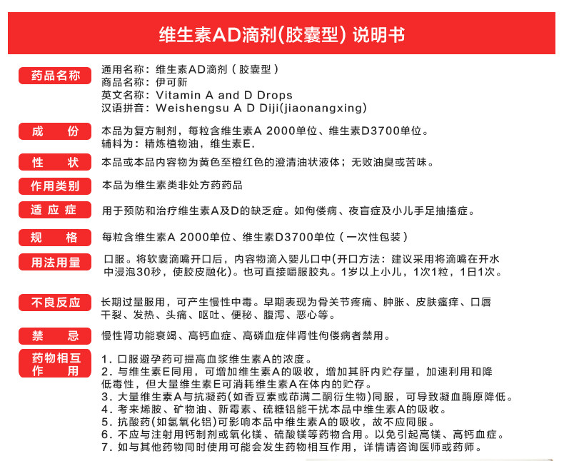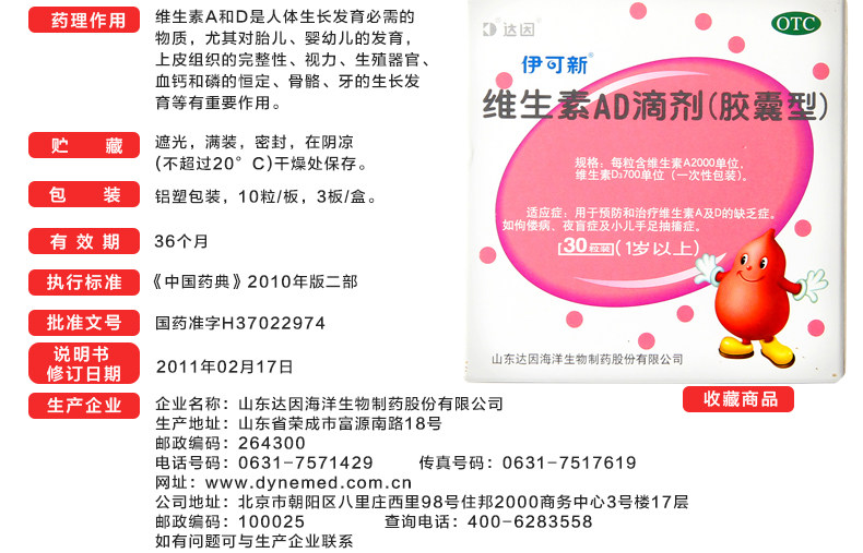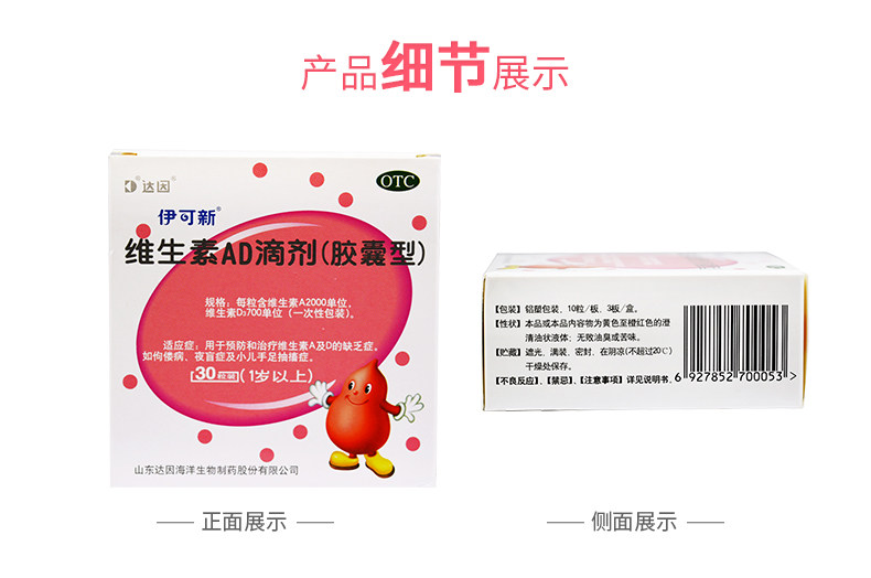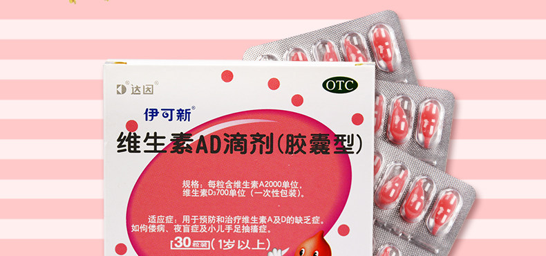 伊可新 Витаминный AD падает 30 капсул за 1 год.