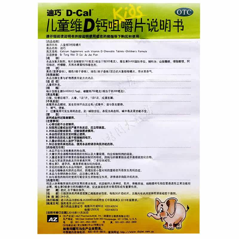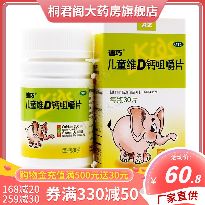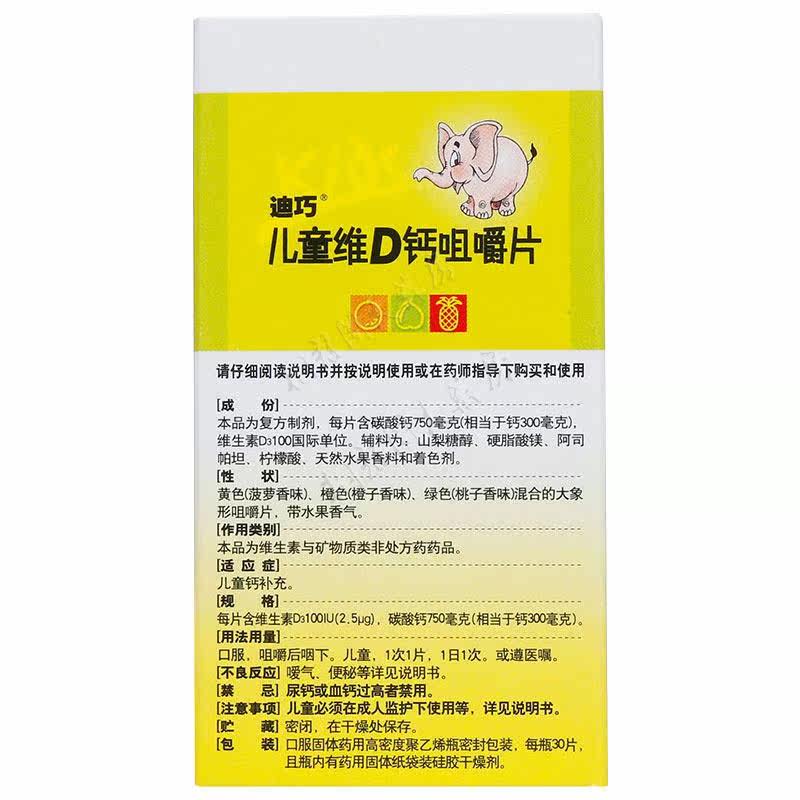 Diqiao Детский витамин D кальций жевательные таблетки 30 таблетки детского кальциевого кальция карбонат кальций карбонат