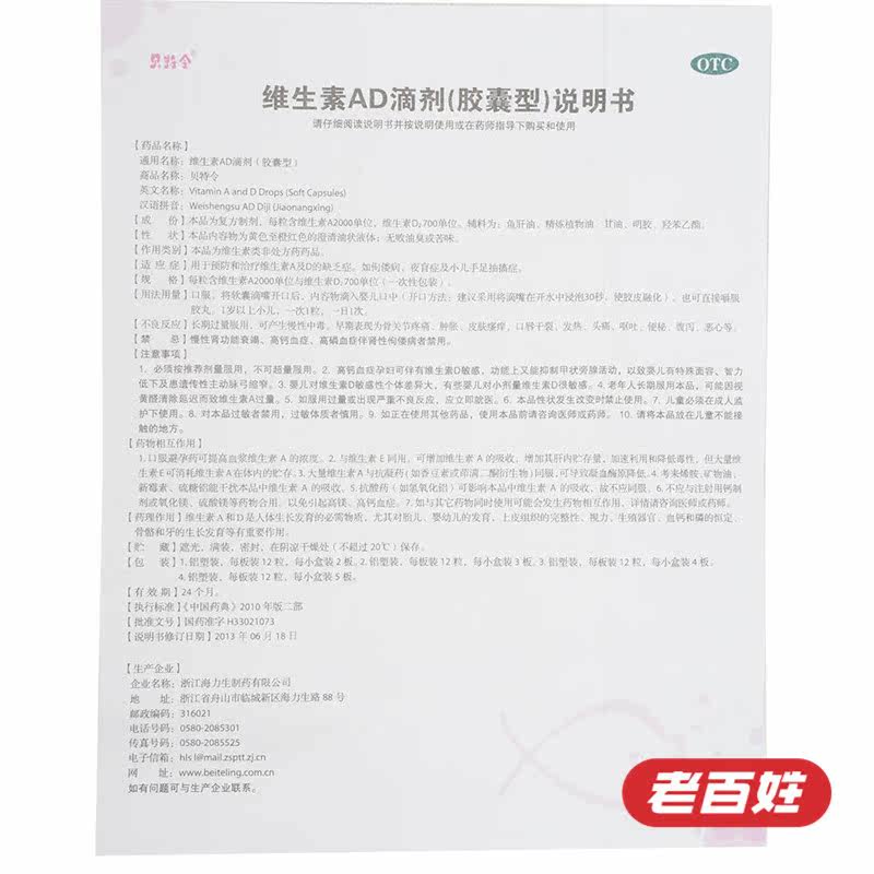 | 【Ингредиенты】 | Витаминные падения AD (лучше) представляют собой составные препараты, в том числе единица витамина A1800, единица витамина D700. |