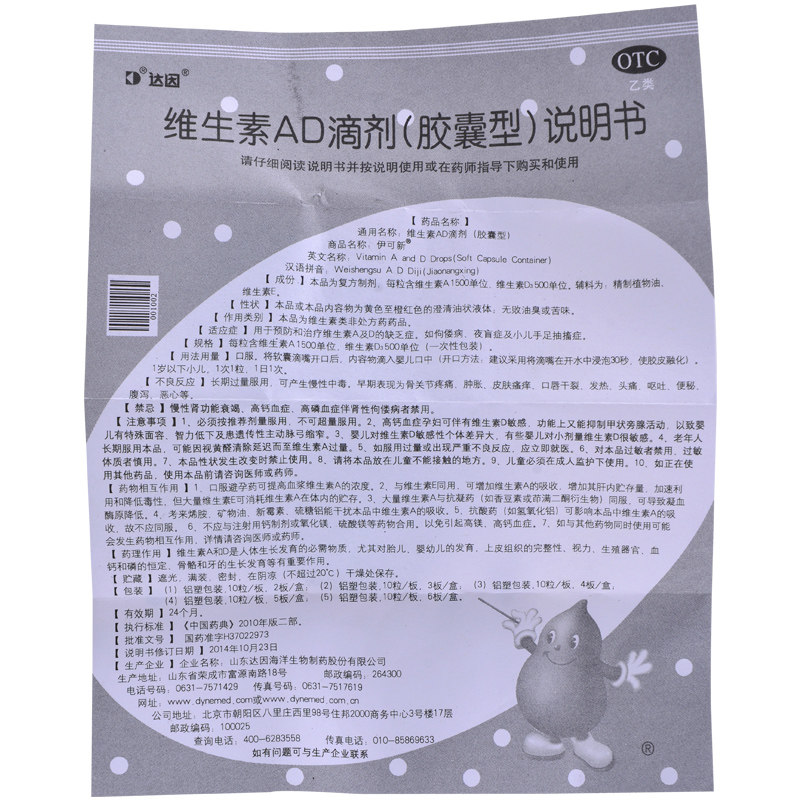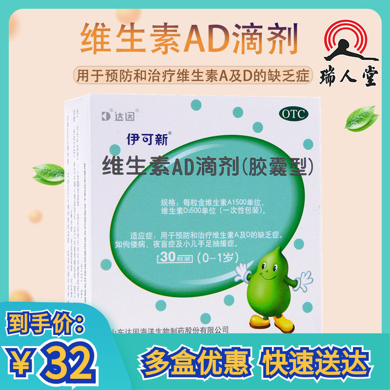- [До одного года] Yikexin Vitamin AD Drops 60 капсул*1 коробка