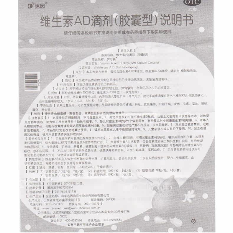 Витамин VICATAMIN AD (более 1 года) 30 зерна дефицита витамина AD.