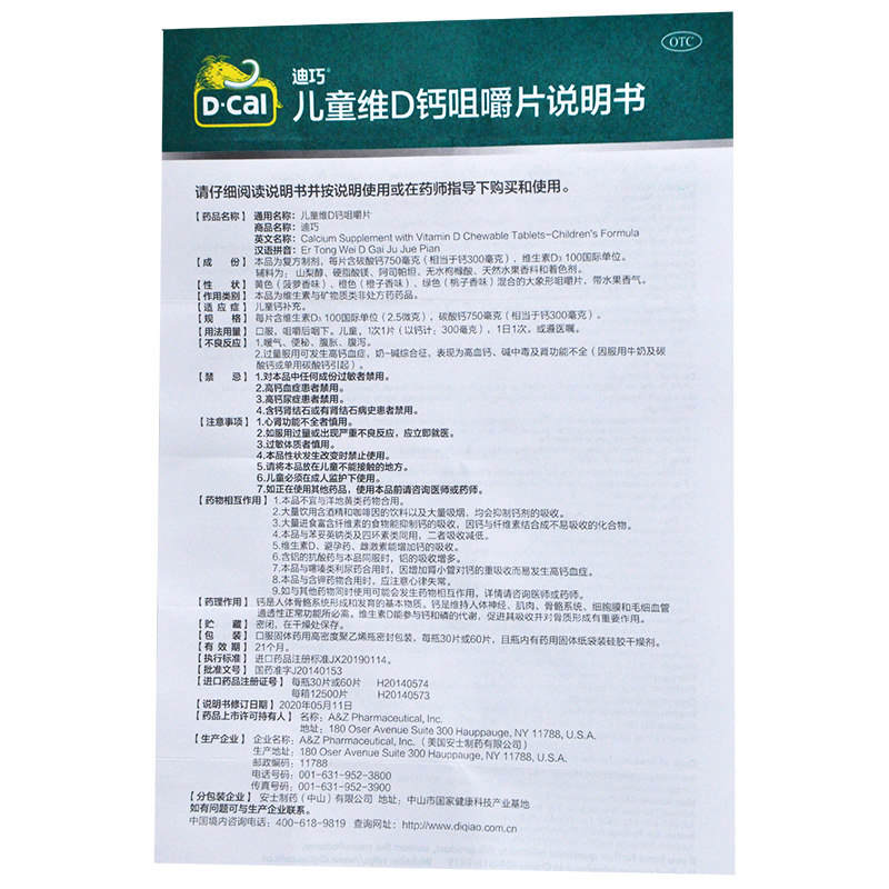 Diqiao Детский витамин D кальций жеватель