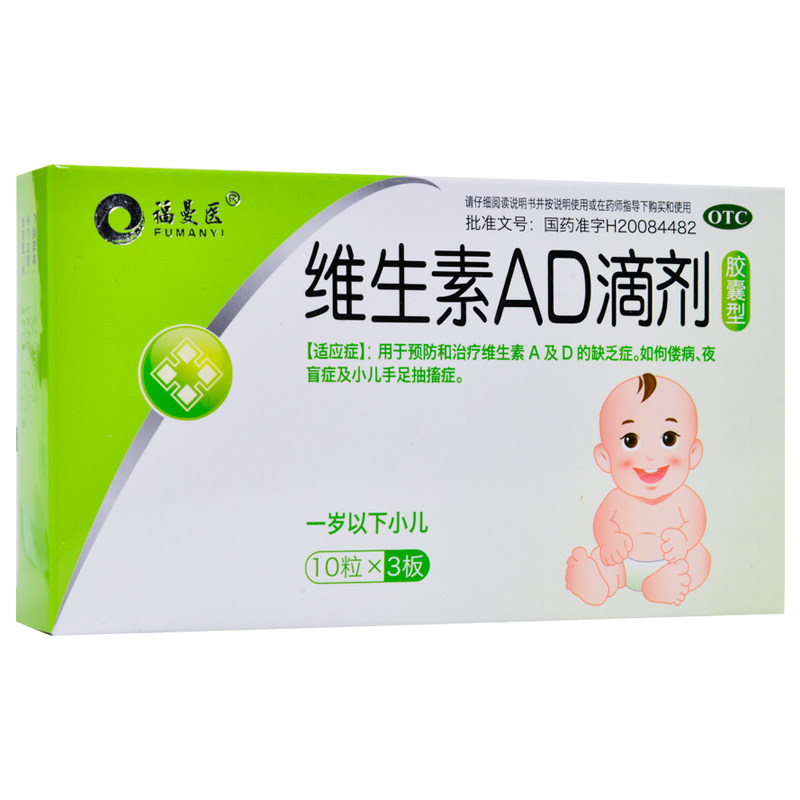 福曼医 30 капсул витамина AD Drops (до одного года) педиатрические детские судороги рук и ног