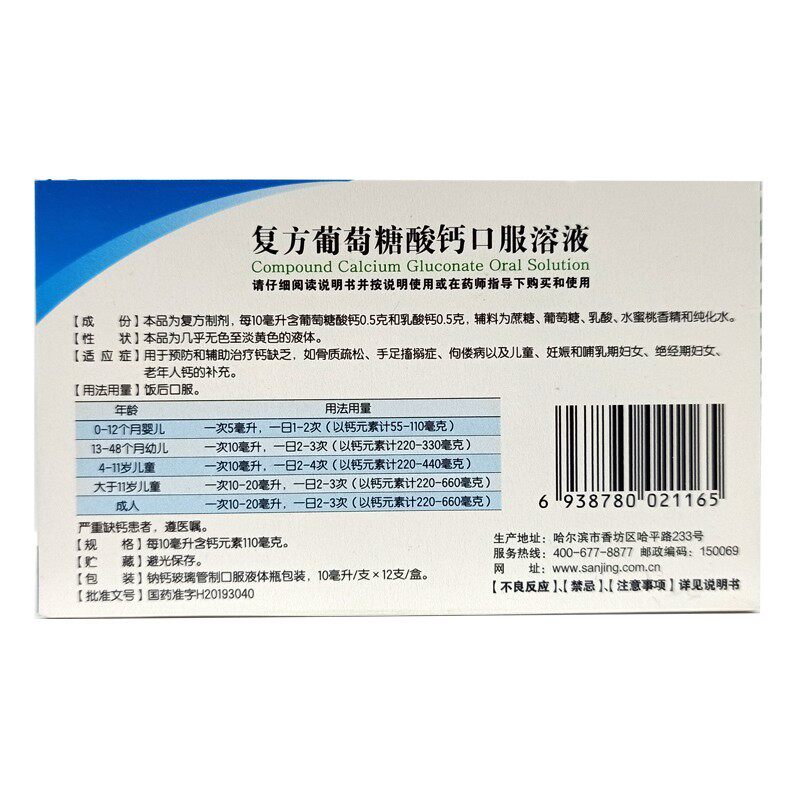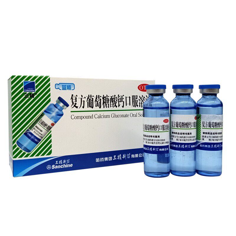 三精 Кальций глюкоза кальций кальций пероральный раствор детей Голубая бутылка из бутылки с цинком взрослые беременные женщины с добавлением кальция