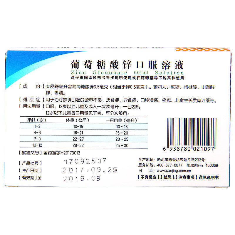 Harbin Pharmaceutical Sanjing цинк цинк пероральный раствор 12 голубая бутылка детей взрослые цинк цинк усиление Harbin Pharmaceutical Wo