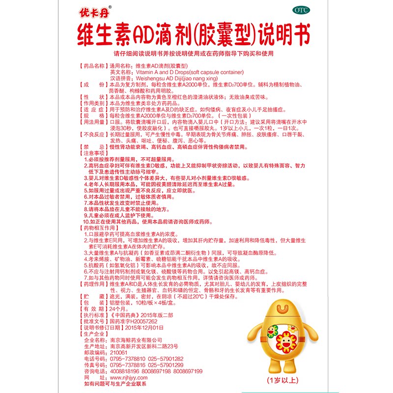 3 ящики из 9 юаней] Youkan Vitamin AD Drops 40 капсул старше 1 -летнего витамина AD отсутствует