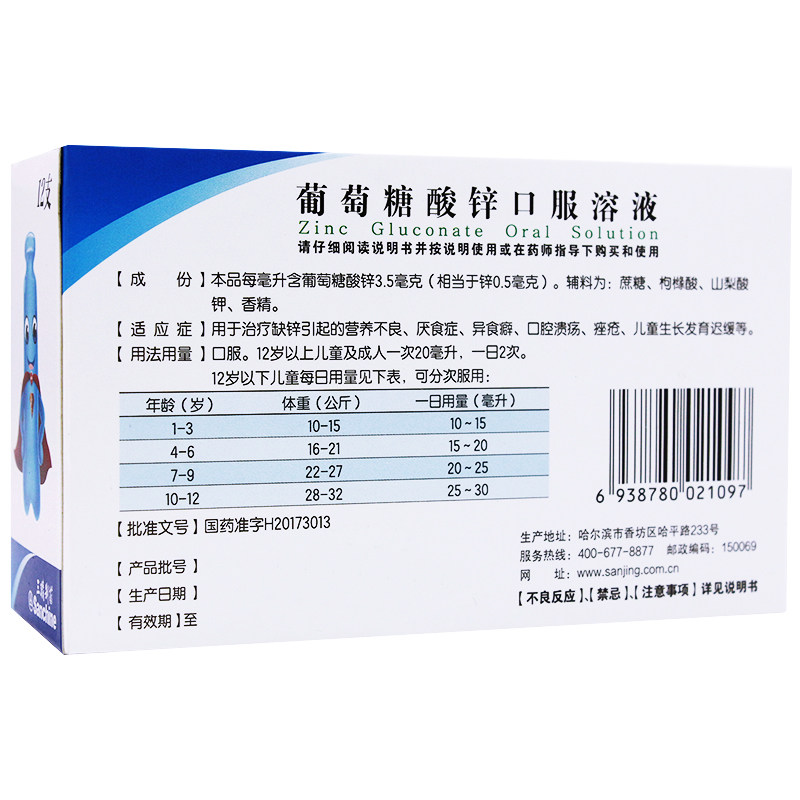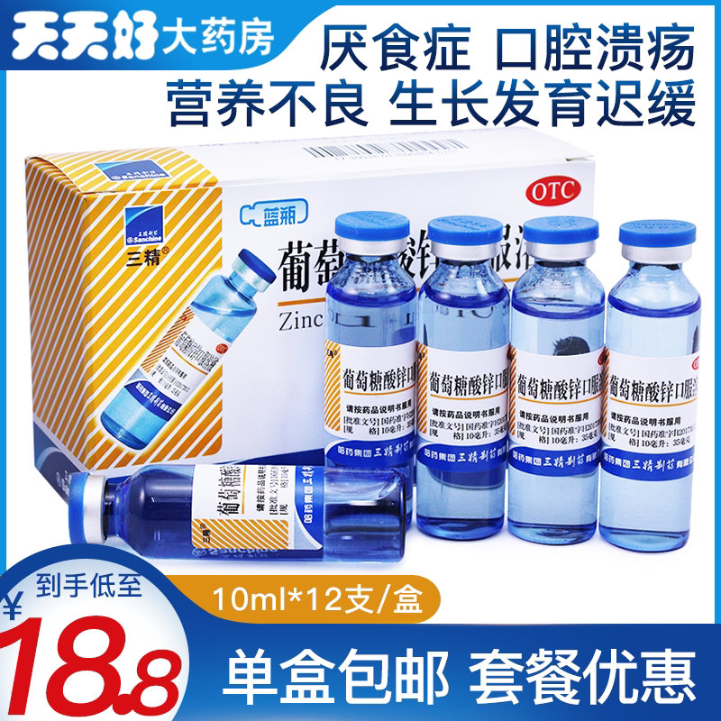 三精 Цинковое пероральное раствор глюкозы цинк 10 мл*12 цинк глюкоза цинк синяя бутылка детская приложение цинк недоедание