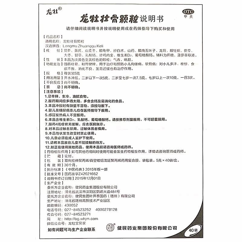 Ухан Цзянмин Лонг Му Чжуан Гранулы для костей и желудочный