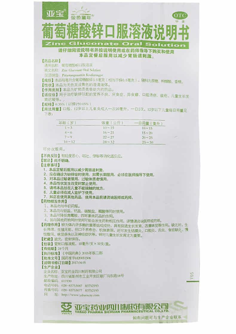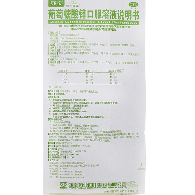 Ябао глюкоза цинк пероральный раствор 10 мл*10 кронштейнов/ящик глюкоза Цинк