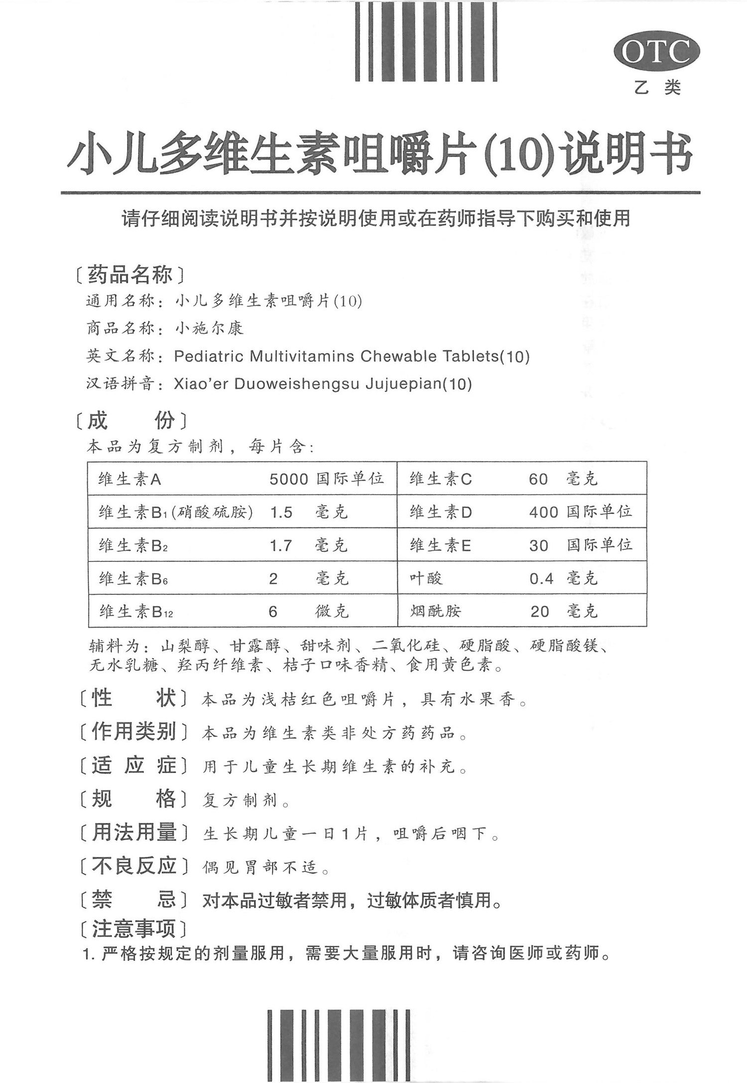 小施尔康 Педиатрические витамин жевательные таблетки (10) 30 таблетки детских витаминных фруктов аромат