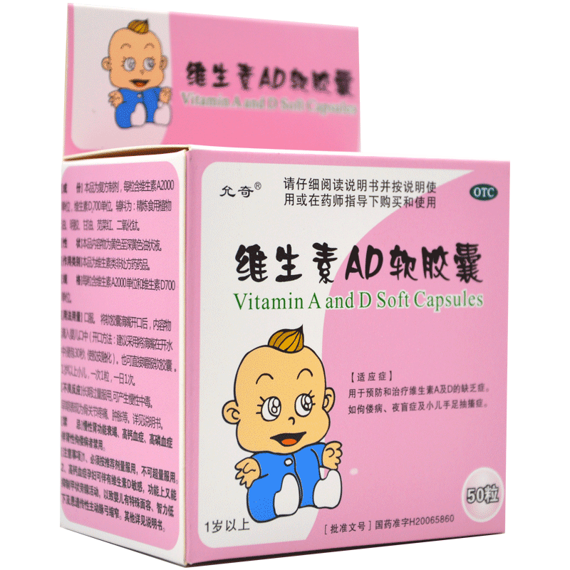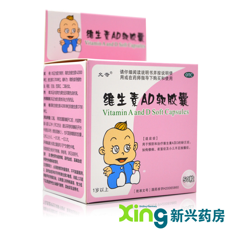 Мягкая капсула витамина AD (Yunqi) (1 год) 50 таблетки 50 таблетки дети развиваются медленно 佝偻 Ночная болезнь слепота