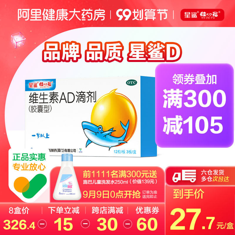 Семь -летняя капсула капсула магазина の Fuxing Shark 36 -Dimensional Vitamin AD -капли (капсула) в течение годовой мягкой капсулы ночная слепота ребенок