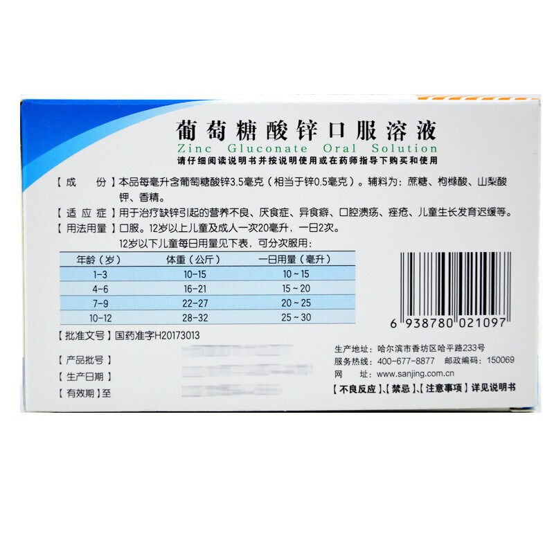三精 Оральный раствор цинка 10 мл*12 цитрусовых, вызванных дефицитом цинка, анорексия недоедания