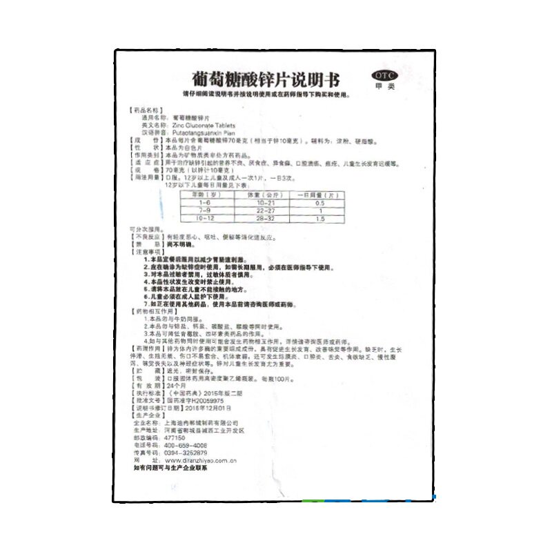 Таблетки глюконата цинка DIR/Diran 70 мг*100 таблеток*1 бутылка/коробка