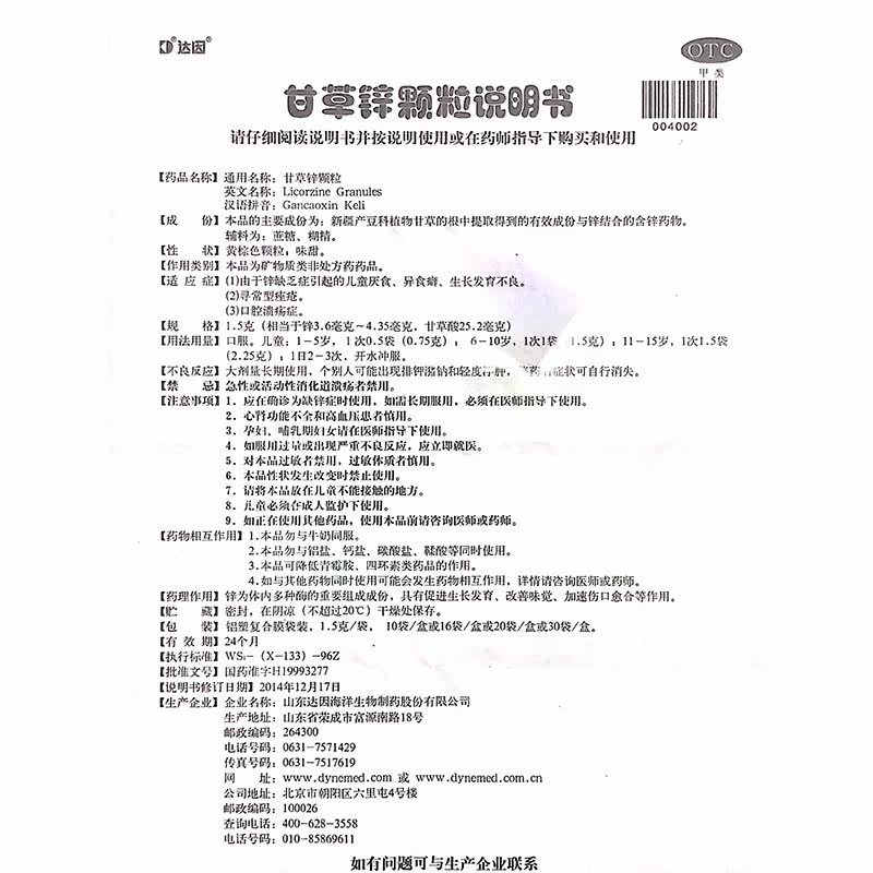 Дата недавнего вступления в силу] Daini ganxin солодка цинка гранулы 20 мешков с добавлением цинка дети анорексия и язвы с пероральными прыщами