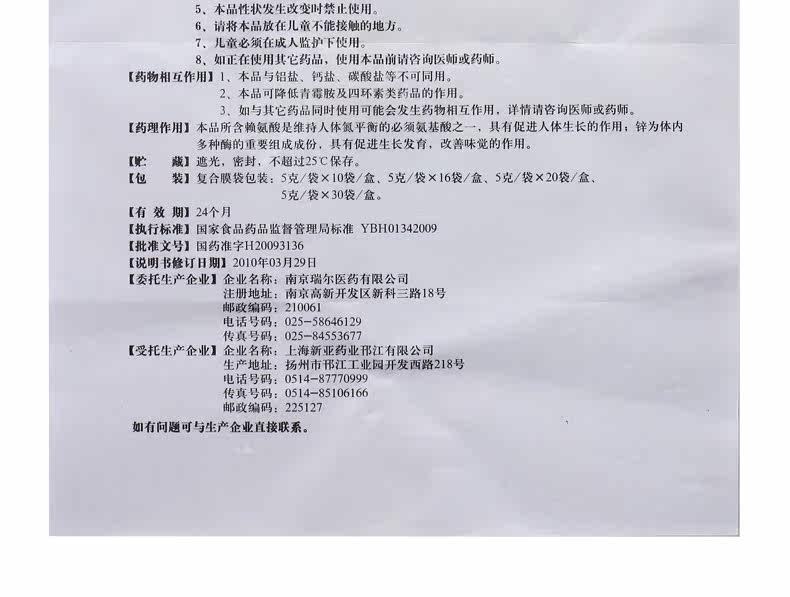 瑞尔 Лизаминовые цинковые гранулы 5G*16 мешков/дефицит коробки с дефицитом лизина лизина лизин и цинк