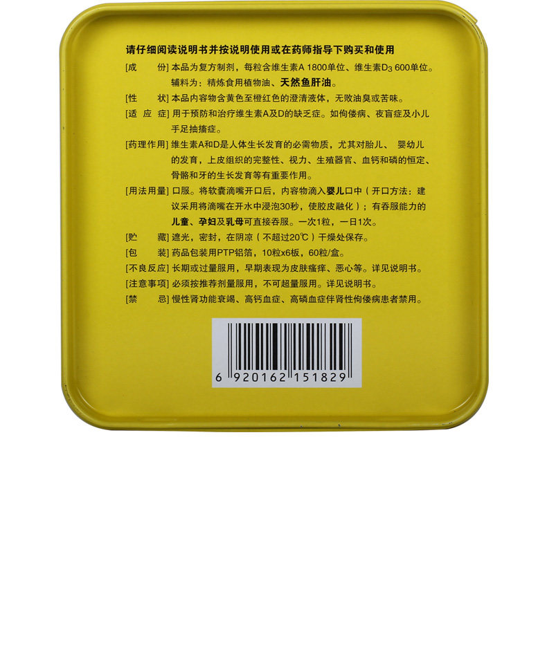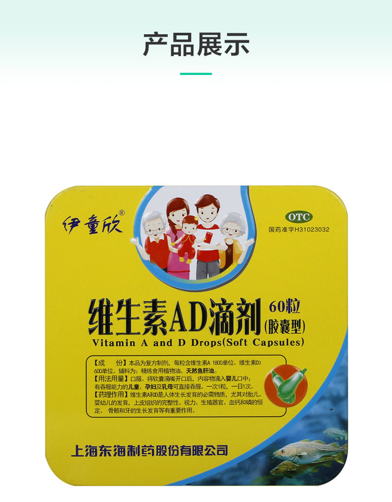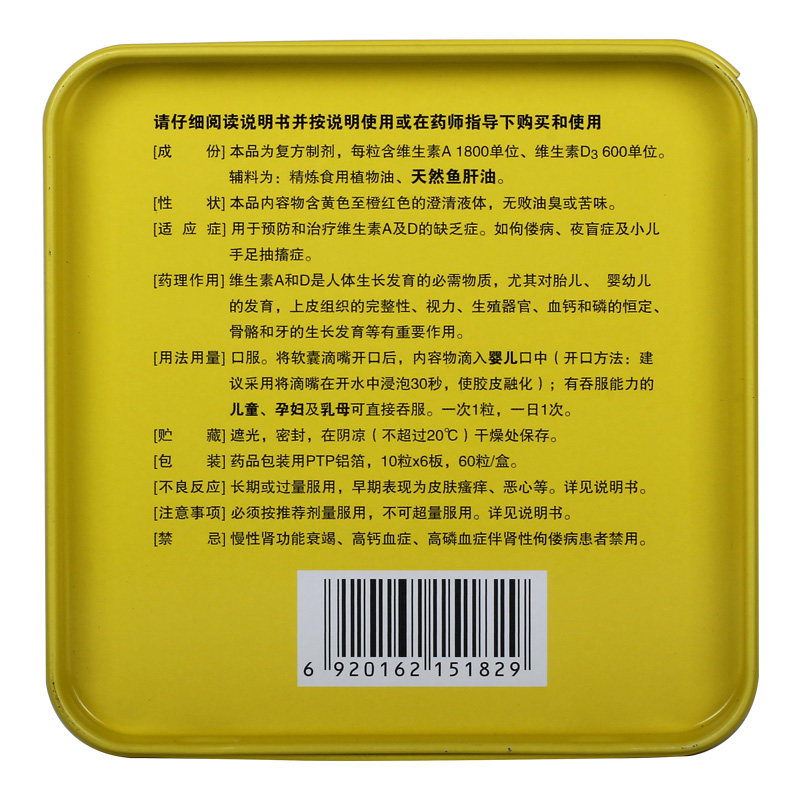 [Yi Tongxin] Витаминовые AD Drops (капсула) 1800 iu: 600iu*60 Meticles/Box 佝偻 佝偻 Ночная слепота тоник