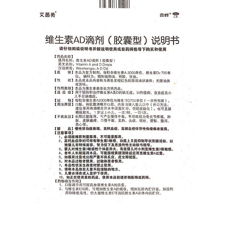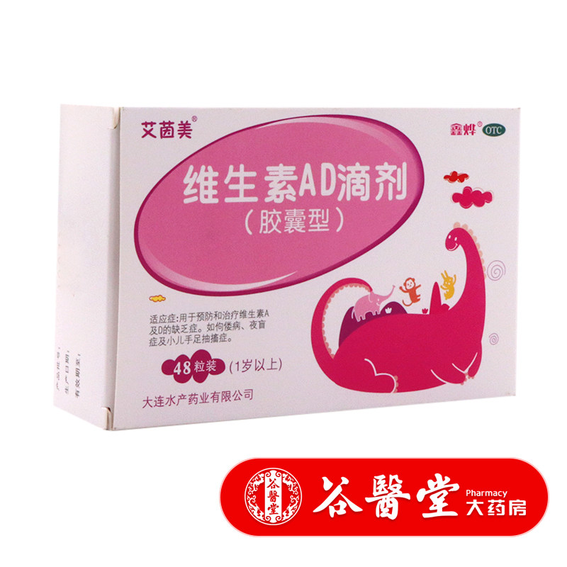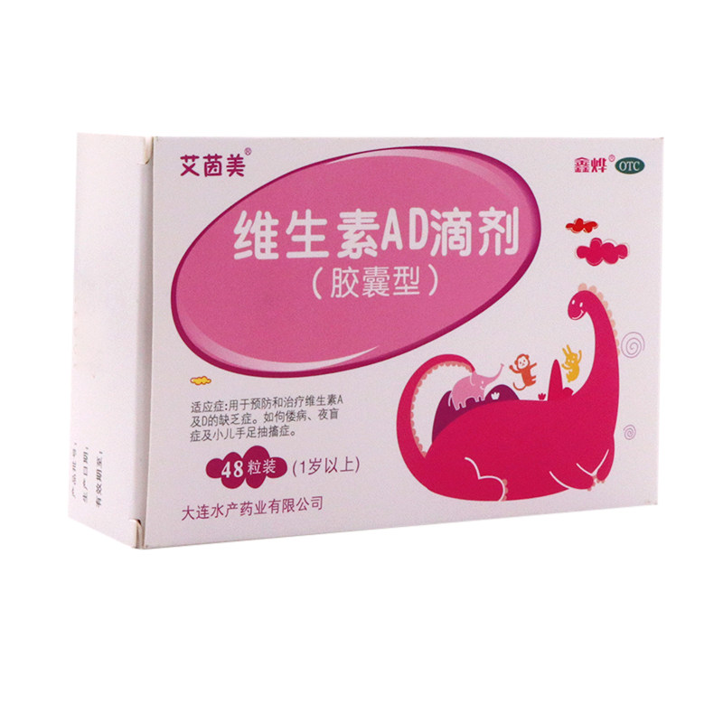 Aiyinmei Vitamin AD падает 48 капсул для детей старше 1 года детей, болезнь, ночная слепота, руки и ноги дернулись