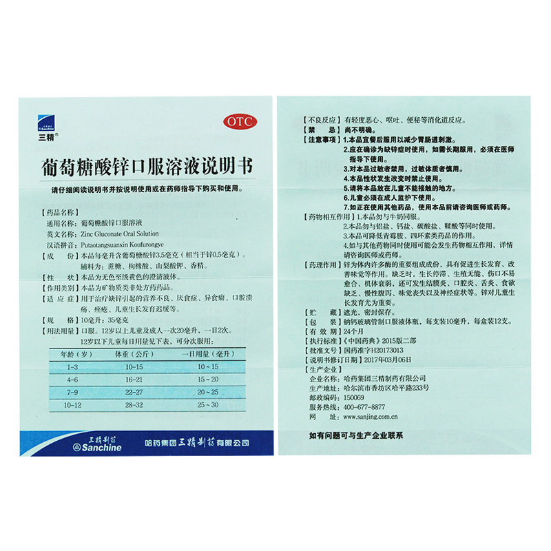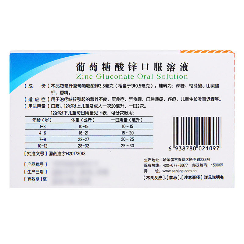 Harbin Pharmaceuticals Цинк глюкозат пероральный раствор 12 рост детей и задержка с задержкой при инопланетной пищи.