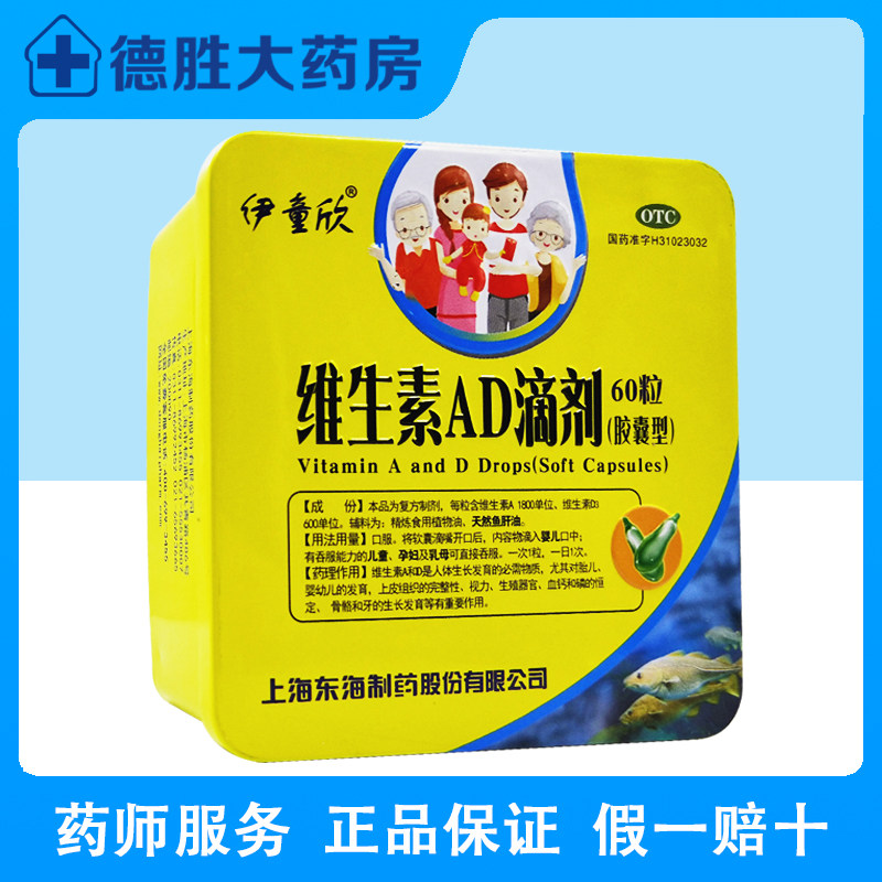 伊童欣 Витаминовые падения AD (тип капсулы) 60 Капсулы/рост коробки и дефицит витамина в области развития